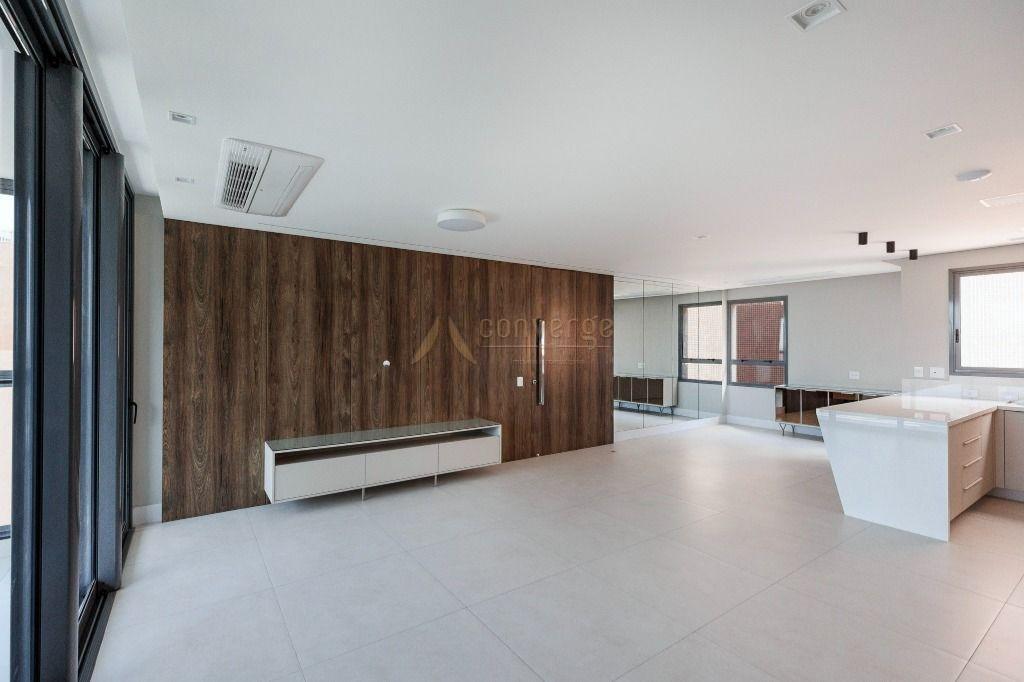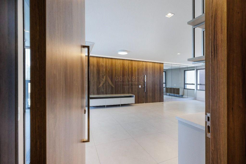 Elaborado no conceito open space você terá estar e jantar integrados com a cozinha, e mais: 3 suítes; sacada gourmet; lavabo; área de serviço e 3 vagas de garagem (1 solta + 1 dupla).