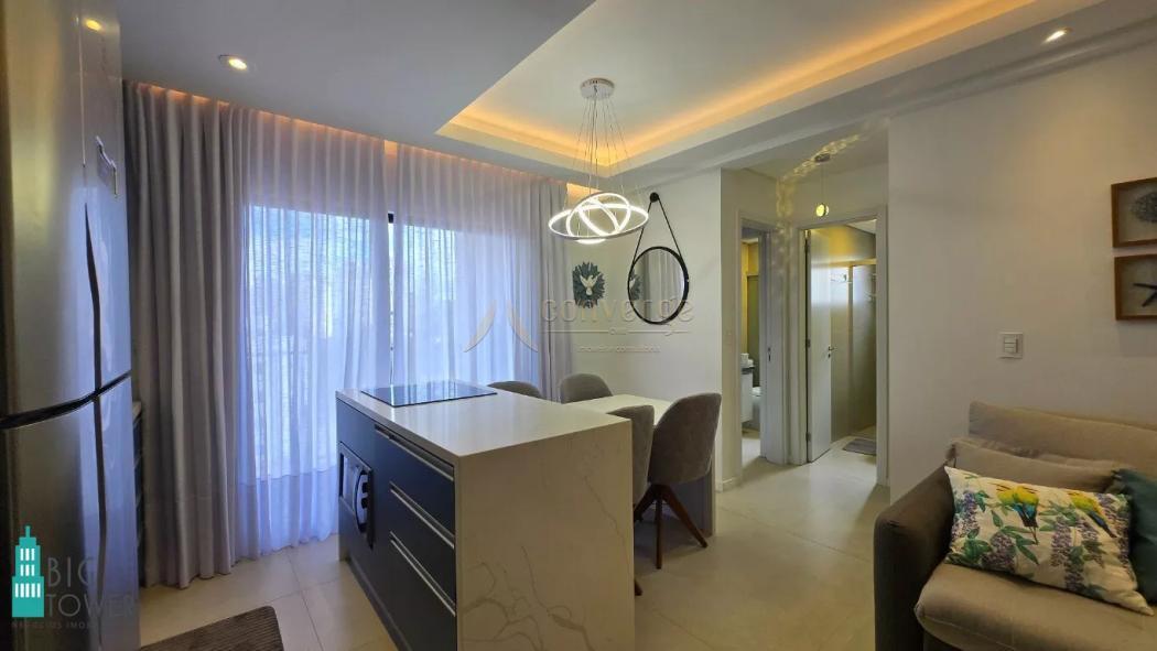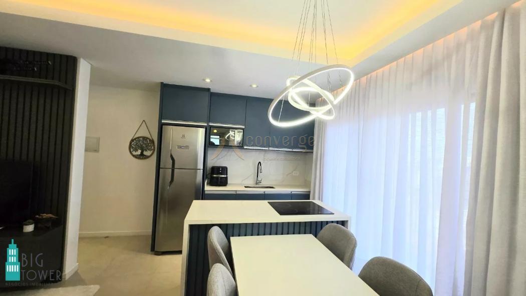 O imóvel está sendo vendido com mobiliário embutido, eletrodomésticos como, geladeira, forno elétrico, microondas, cooktop, máquina de lavar roupas/lava e seca, ar condicionado, camas de solteiro e casal / Box Baú, colchões e cortinas.