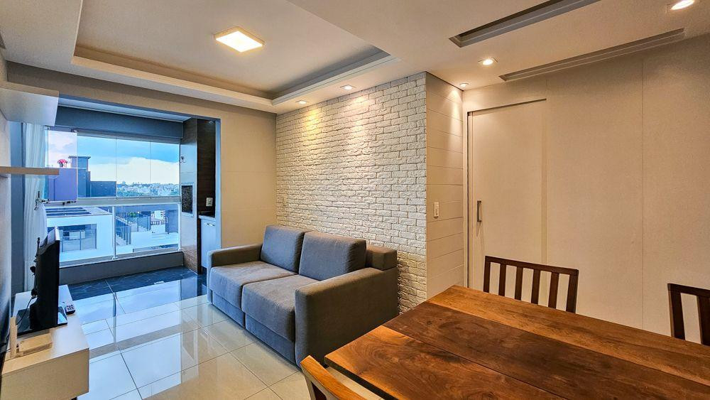 Sala: Sofá retrátil, TV 40 Samsung, mesa com 4 cadeiras, iluminação embutida