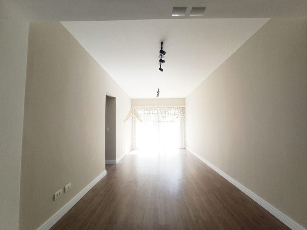 - Sala espaçosa para dois ambientes, com sacada, piso laminado e ensolarada