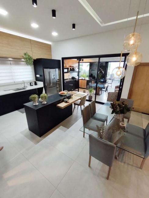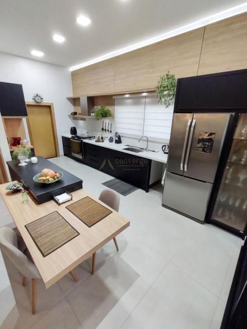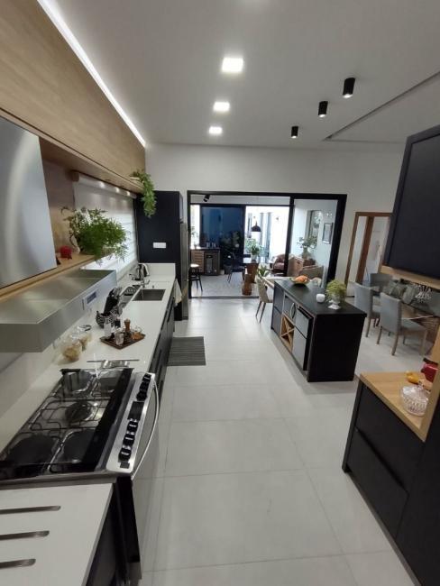 Cozinha, sala e churrasqueira integradas, com moveis planejados (churrasqueira interna gás)
