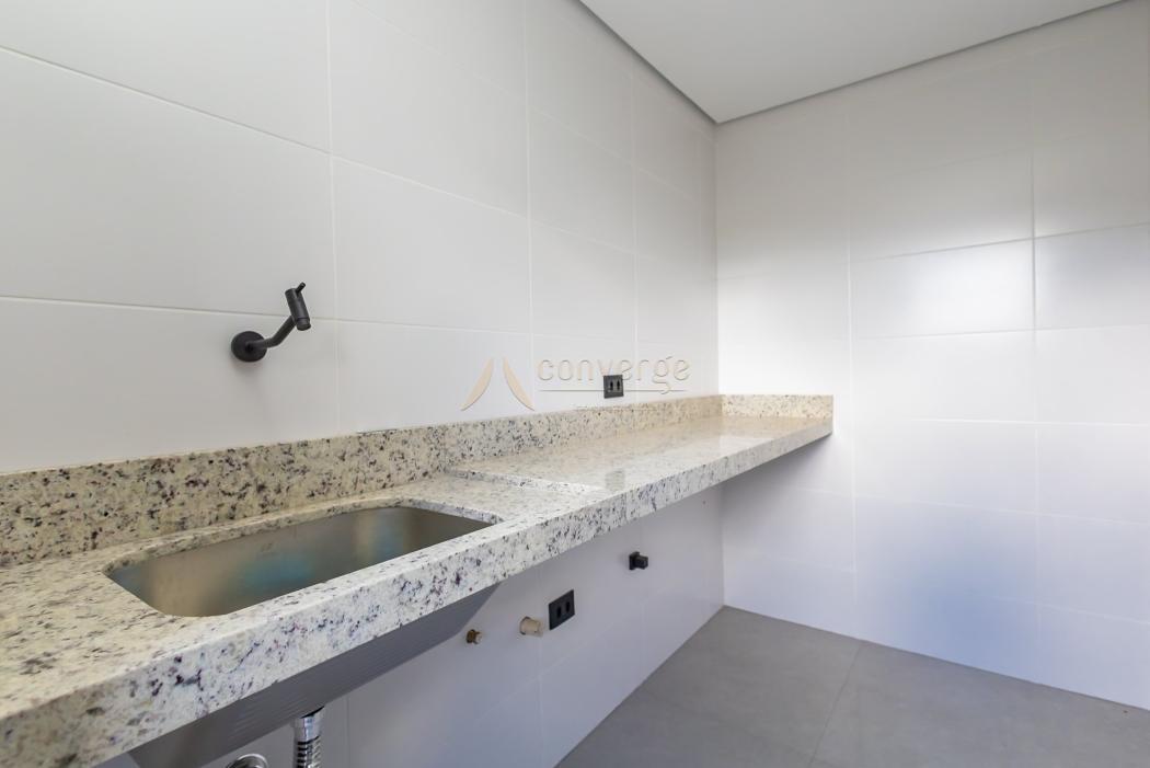 - Cozinha com infraestrutura para coifa, pia dupla, mármores e metais instalados