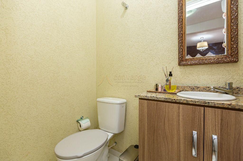 Lavabo com ótimo pé-direito, fora da escada, proporcionando mais conforto;