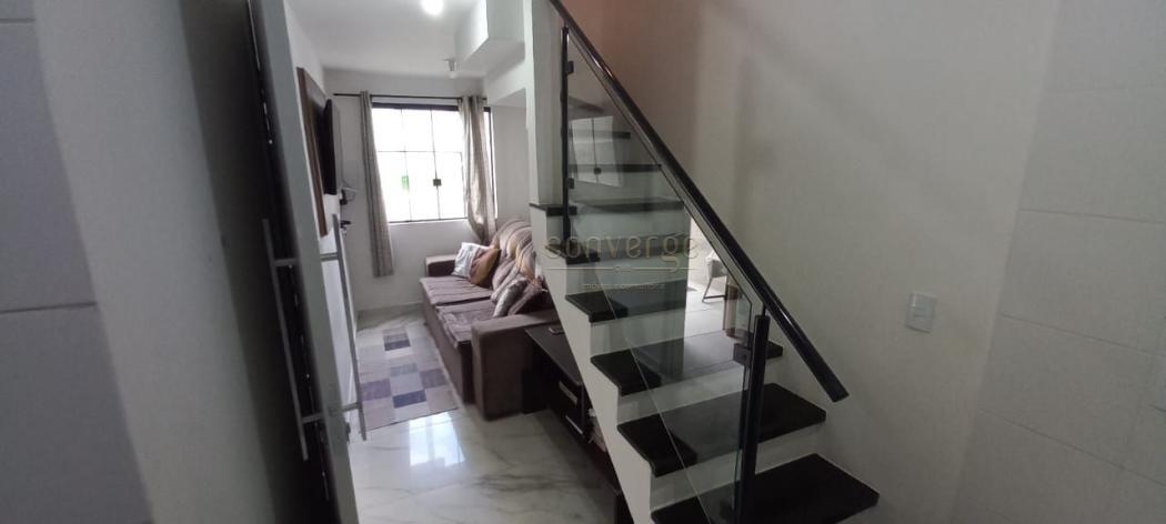 Sobrado de frente para a rua com sala, cozinha, 2 dormitórios, sendo 1 suíte, banheiro social, área de serviço e 1 vagas de garagem.
