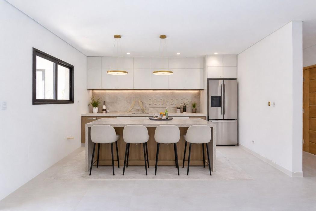 No andar inferior, você encontrará um conceito aberto que integra perfeitamente a sala de estar, jantar e cozinha, criando um espaço acolhedor e convidativo para reunir amigos e familiares. Além disso, desfrute da infraestrutura para um espaço gourmet externo, perfeito para churrascos e eventos ao ar livre.